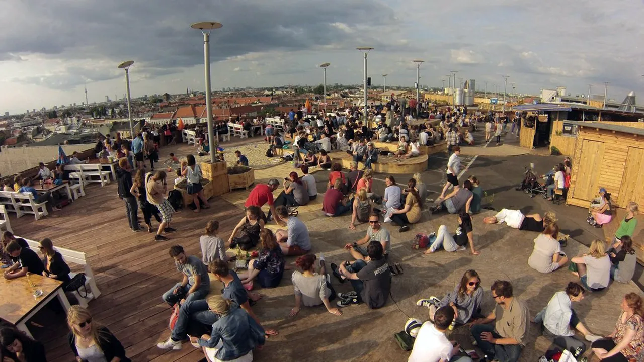 Hoch über den Dächern von Berlin-Neukölln entsteht eine Mischung aus urbanem Dachgarten und trendigem Club: der Klunkerkranich.